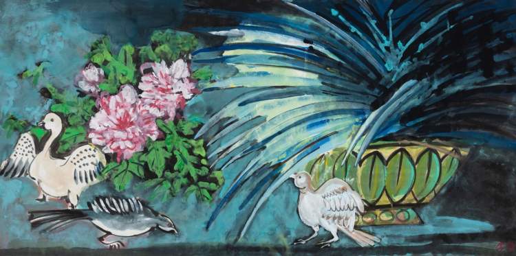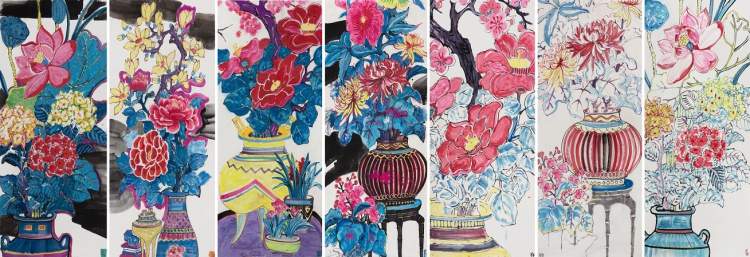 在这些作品中,梁缨用其愈发成熟的表现主义笔墨方法对中国传统书画、年画和版画中的一些经典花卉图式进行再造,融合观念与笔墨技巧,将历史、传说、隐喻与想象拼接,绘制出富有全新冲击力的视觉图景,呈现出一个引人入胜的“花花世界”。