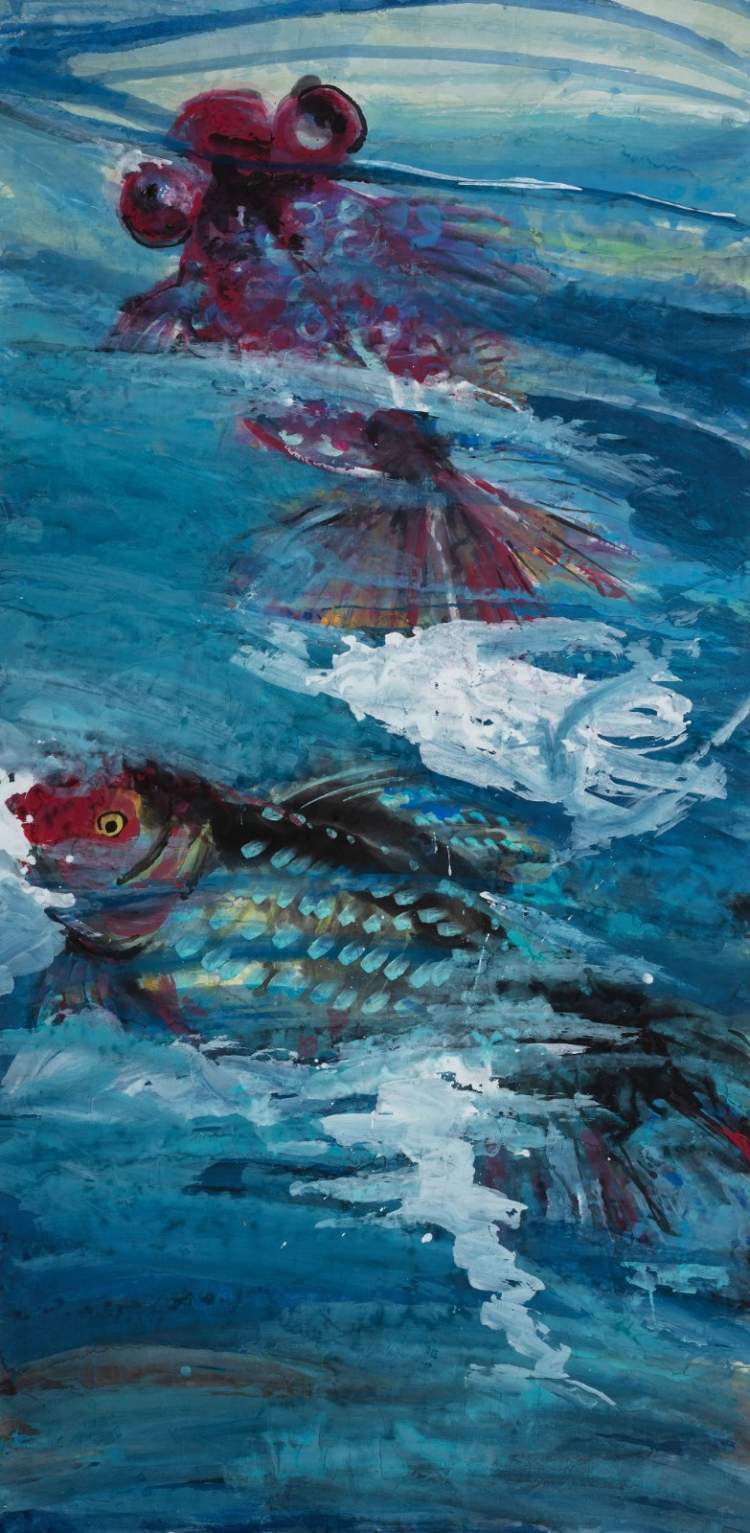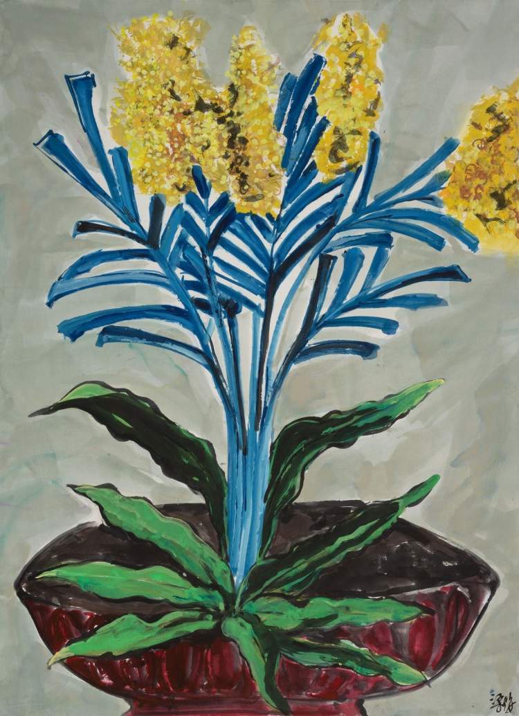 本次展览,梁缨将其笔下奇幻的大千世界图景集中在花卉这一领域,共计展出《花开富贵》、《岁朝清供》、《黄花蓝叶》、《连莲看》、《绿与黑》、《芙蓉园里看花,鱼藻池边射鸭》、《鱼自乐》等30余幅作品。
