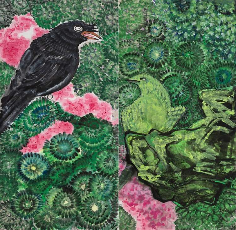 浓墨重彩的《绿与黑》充分体现艺术家以古为师、与古为友的创作理念。创作灵感虽来源于古画、古瓷器,但画风及笔触却极具当代表现主义气质,完全没有留白的画面,强烈的色彩对比,充满张力,呼之欲出。