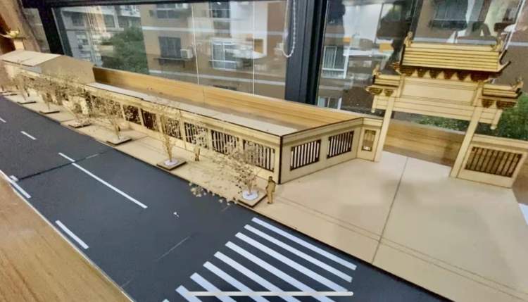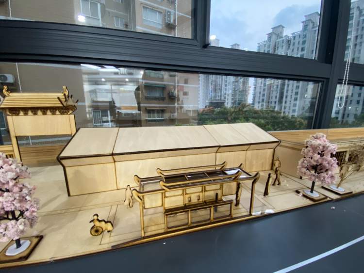 在老师的带领下,学生们分成小组,进行实地测量与调研,一次次到现场进行方案的讨论与试验,他们甚至还研究起了黄浦区的区位图。一周后,一个个充满巧思的方案以模型的形式呈现了出来——有些同学做出了“口袋公园”的设计,调整了公交车站的开口方向,重新规划了转弯车道,进行人车分流;有些同学甚至根据蓬莱公园的风格,对公交车站的整体风格都进行了重新设计,以古色古香的榫卯结构凸显中式特色……