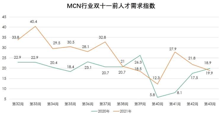 11月8日,拉勾招聘数据研究院发布的《2021年双十一人才报告》数据显示,2021年双十一前夕电商行业人才需求不升反降,MCN兼职职位增长437%,内容社区高薪挖人,商业化趋势显著。
