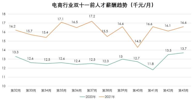 随着双十一购物节促销活动的前置,电商行业的人才储备周期提前至8月至10月初已基本完成储备。业内人士认为,“电商行业人才流动性大,10月中旬的人才需求回升是为了‘补缺’和‘应急’。”