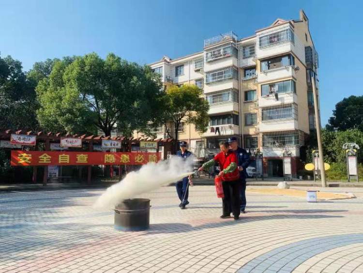奉浦街道的工作人员在向居民发放消防安全宣传资料的同时,专门安排了升级版微型消防站的队员向居民演示灭火器的正确使用方法,切实提高居民在火灾发生时自救、互救的能力。