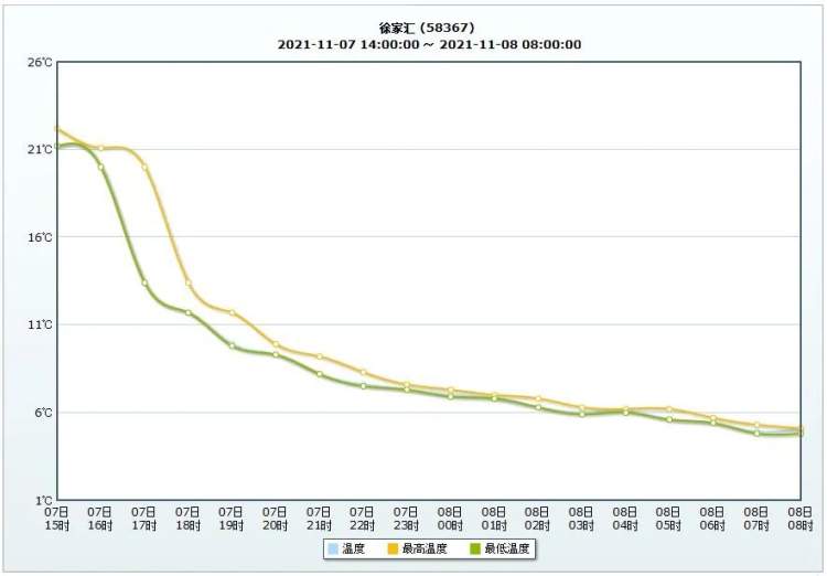 ■7日15时-8日08时徐家汇站实况气温曲线图