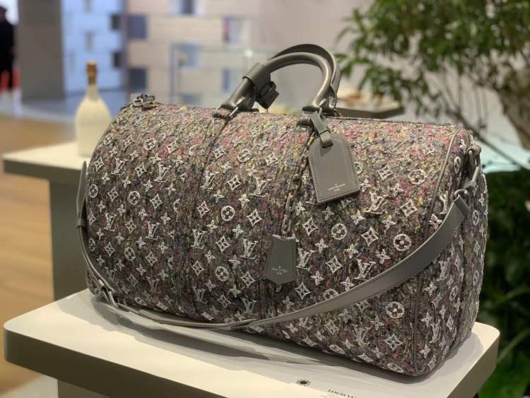 另一奢侈品集团LVMH除了现场展示了旗下15个代表品牌的经典产品,也把更多带有未来感的理念融入其中。例如LV的一款Keepall藏品手袋的制作材料就涵盖了再生羊毛、再生塑料,在“创意循环”突破上的意图一览无余。