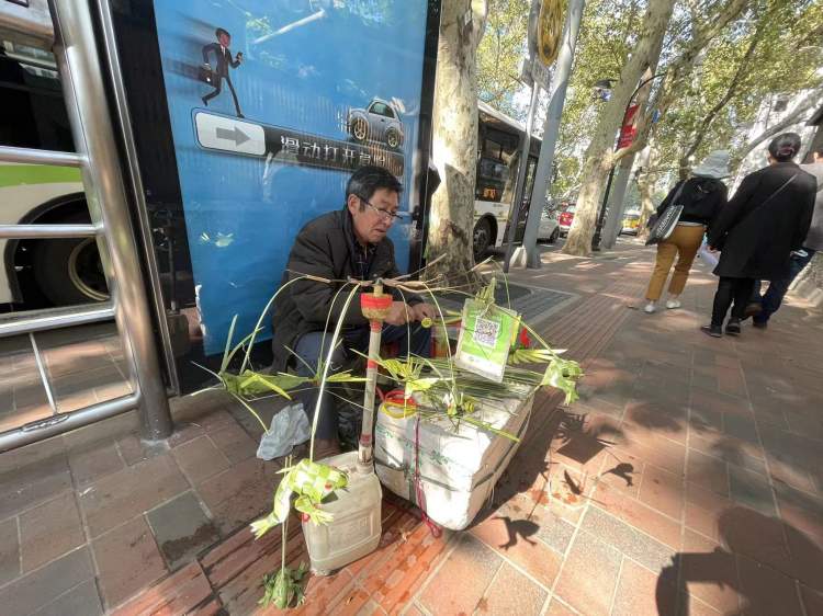 在宝庆路上,一位手艺师傅蹲坐在路边,用精湛的手艺向路人展示着非遗文化……