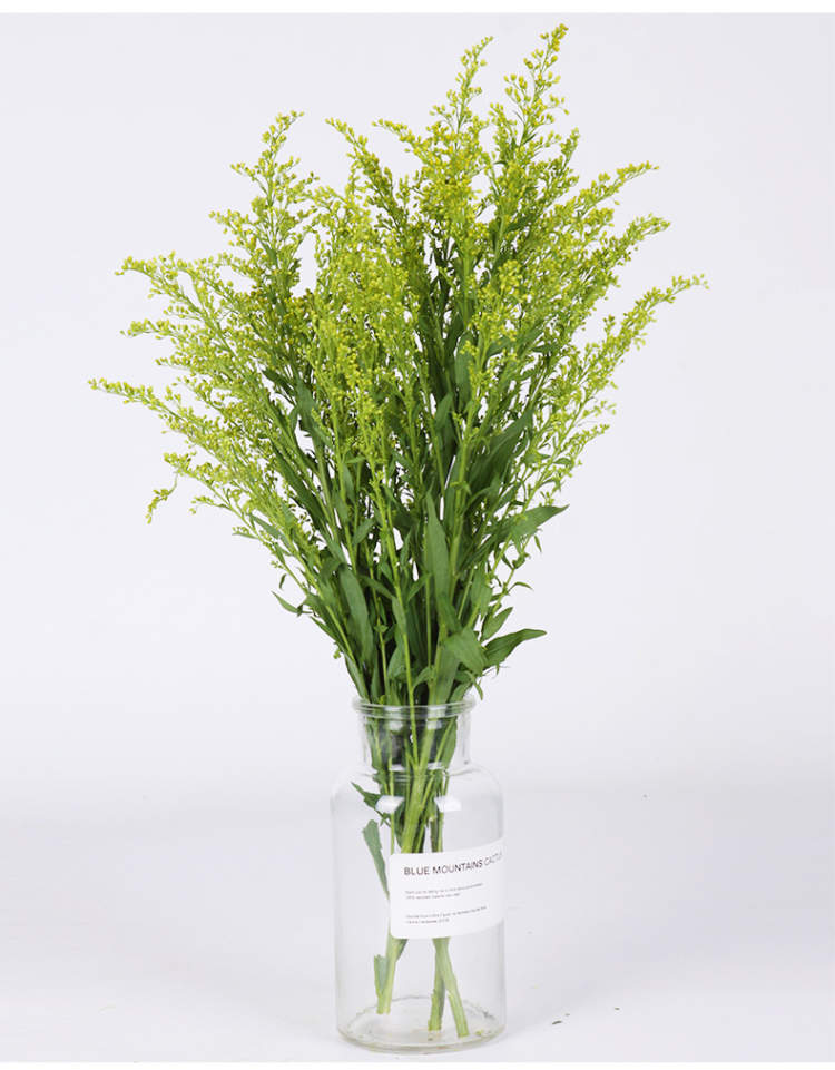 加拿大一枝黄花不仅出现在荒地,也出现在花市里,可能你还买过。它开着细小黄色花苞,活泼亮丽,在花市的名字叫“黄莺花”,又被称为“幸福草”、“麒麟草”。