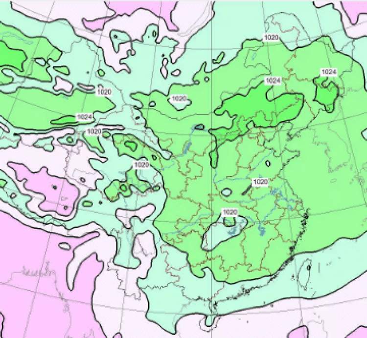 ■14日-18日地面气压场分布图:绿色代表高压