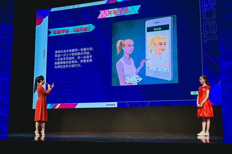 而为了考验选手们的新媒体能力,决赛还增加了“并驱争先”环节,由选手依次上台抽题,题目包含话题评述、模拟主持、现场采访,集中地展现选手的逻辑思维能力、语言组织能力、临场应对能力等。