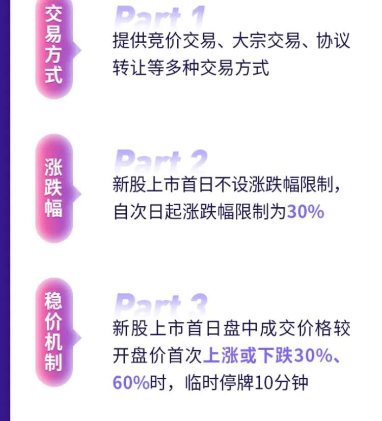 同时,北交所上市公司股票涨跌幅30%,新股上市首日不设涨跌幅限制,首次触及±30%或±60%,临时停牌10分钟。新三板精选层现有挂牌公司整体平移至北交所,平移当日其股票交易实施30%的涨跌幅限制。