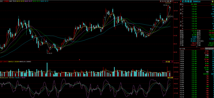 本周一一开盘,亿纬锂能就大幅拉升,当天最高上冲18%,创出历史新高,第二天又上涨了1.95%。而且量价配合温和,本周4阳一阴几乎都在高位运行。
