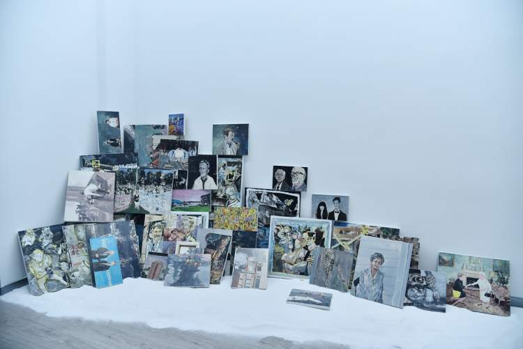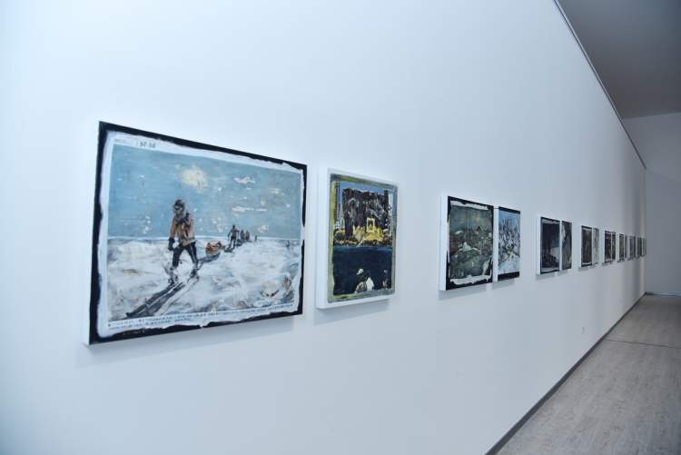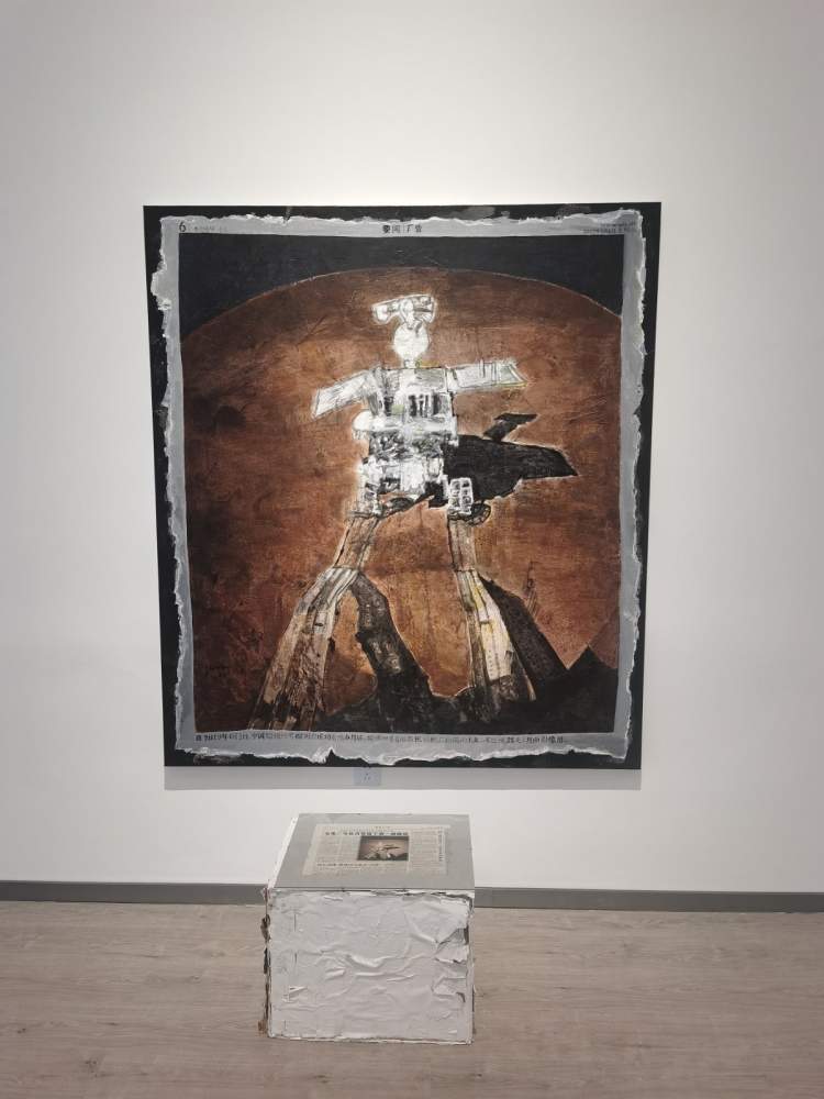 “互文”系列主要展出绘画大作品,艺术家用绘画手段对新闻图片进行再次表现,并且把作品与当日的报纸一起展出,甚至保留了墙上的报纸随时可能被撕下的感觉,直观展现出新闻事件的即时性与绘画作品的持久性之间的张力。