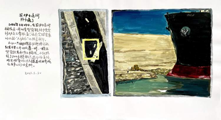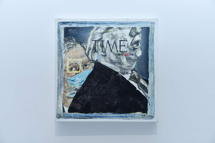 “日记”系列是小幅丙烯作品,围绕历史事件,尤其是过去两年来疫情导致的世界危机,在绘画和文字之外,加入电视画面,用更丰富的元素和更鲜活的可看性,使属于艺术家的个人日记引发读者更强烈的共鸣。