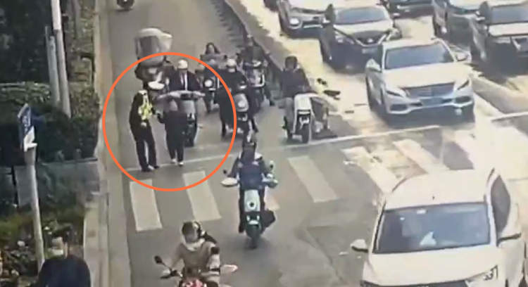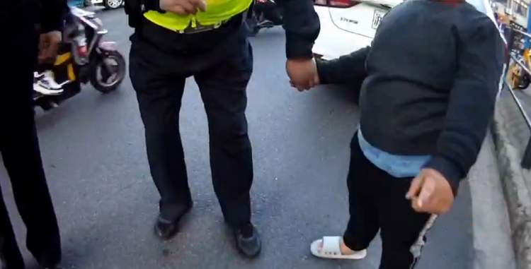 孩子一个人在非机动车道上闲逛,身边也没有大人,这样的情况立即引起了徐警官的警觉。于是,他立即跑上去把孩子带到安全处,询问情况。
