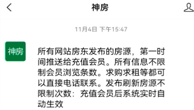 ▲使用者在“神房”小程序充值后就可浏览房源信息