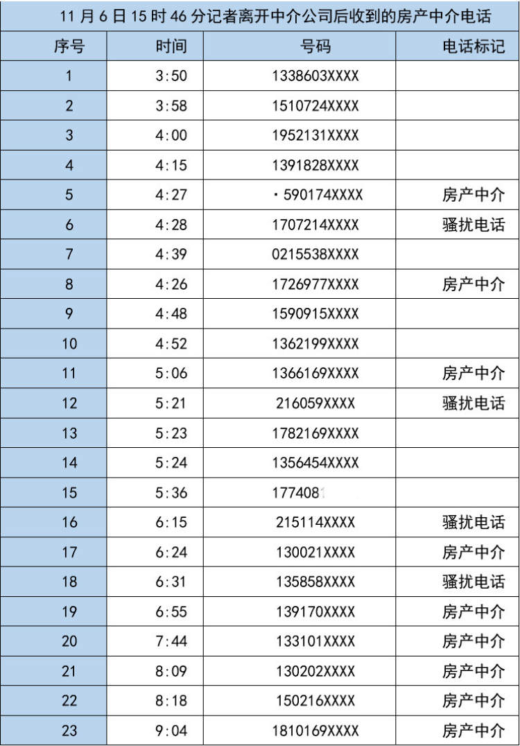 据统计,11月6日当日,记者共计接到了23个电话,在接下来的两日,记者又接到了17个电话。