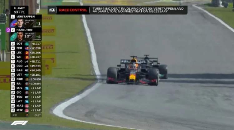 第48圈,汉密尔顿开始尝试超越,两人双双冲出赛道,还好只是在缓冲区刷了一圈。第59圈,汉密尔顿终于在4号弯成功超越,并很快将差距拉开到2秒。最终英国人率先重现,继俄罗斯大奖赛后再次站到领奖台最高层,收获了F1生涯的第101胜。这也是他2016、2018年后,第三次在英特拉格斯夺冠,汉密尔顿还被评为本场最佳车手。