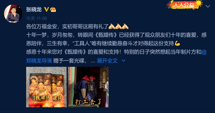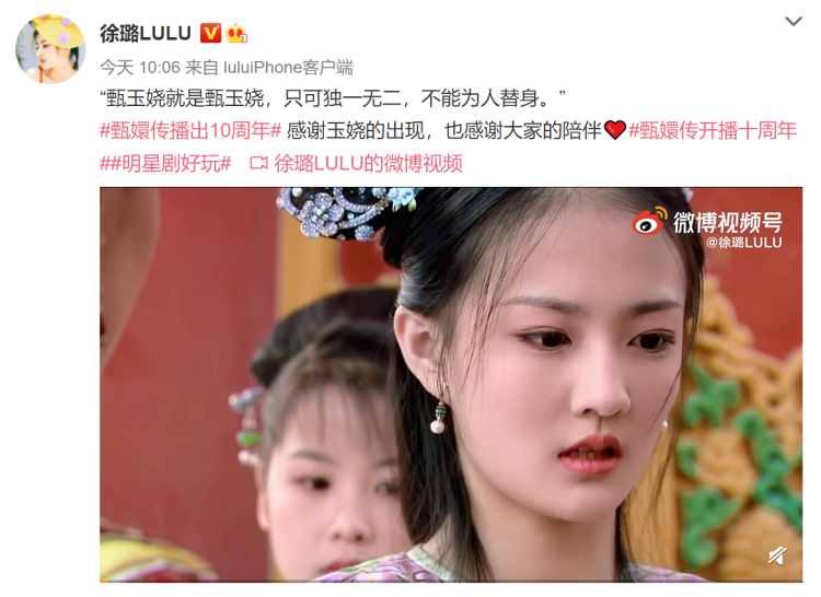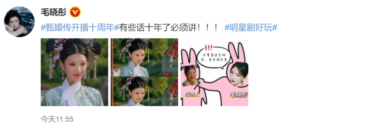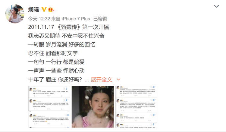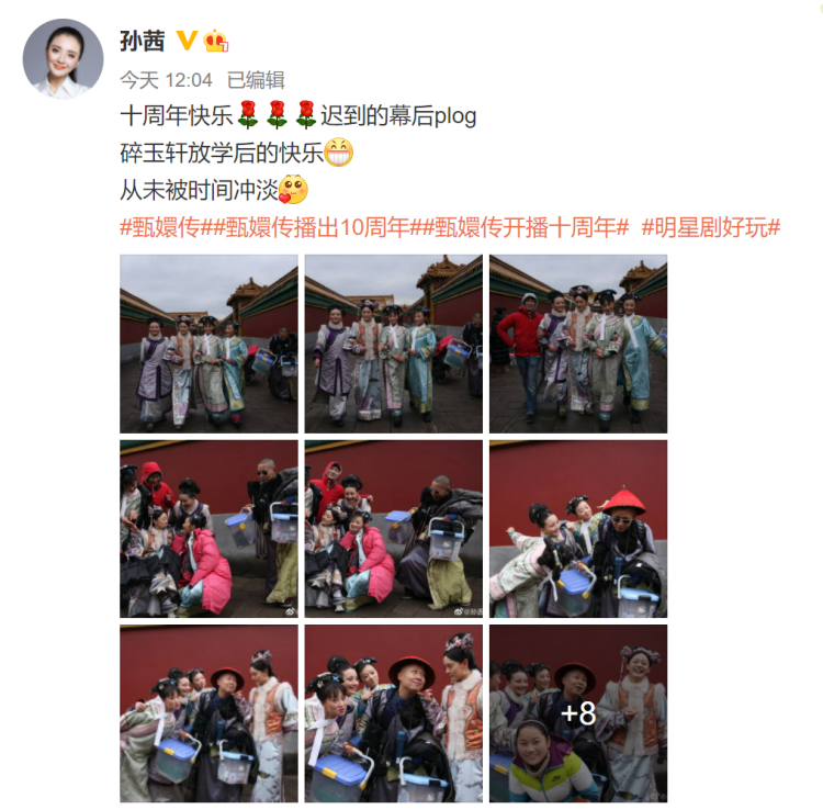 因此,在首播十周年之际,演员们也纷纷发文,集体怀念《甄嬛传》的岁月。