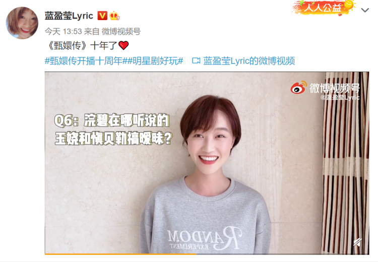 “浣碧”蓝盈莹也发布VLOG回应各类剧中话题,“浣碧对果郡王有意思是在哪个节日”这种考题,对“甄嬛传十级学者”们来说都不太困难吧?