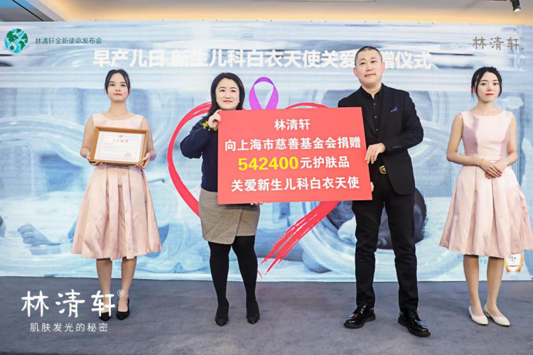 11月17日恰逢世界早产儿日,积极爱心公益事业的林清轩关注到新生儿科医护人员为减少早产导致的婴儿健康问题和生命安危,实行三班轮换,日夜进行综合性监护与“鸟巢式”护理,用爱履行着“临时妈妈”的责任。她们用爱守护着早来的生命,林清轩也希望用山茶花守护她们的光彩。因此,在发布会上林清轩宣布向上海慈善基金会捐赠价值54余万元物资,为这些“妈妈”们送上诚挚的祝福与关爱,希望守护新生的她们,能够拥有光彩容颜。