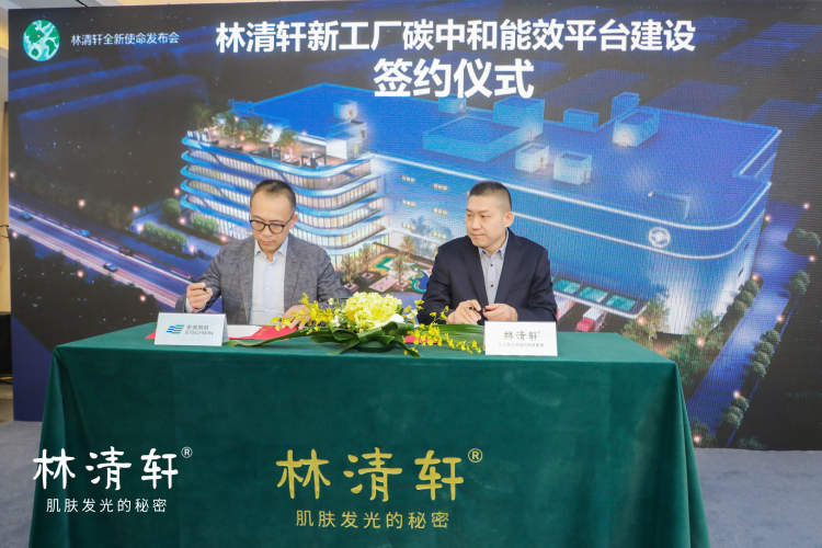 发布会上,林清轩与金风科技集团强强联合,签约共同打造全新碳中和工厂及科研中心。据了解,坐落在松江区新桥镇新工厂将全部采用自给自足光伏发电,依托能效平台对全厂用电情况、能源结构、绿电结构、碳排情况、减排情况进行实时监测,实现二氧化碳“零排放”。