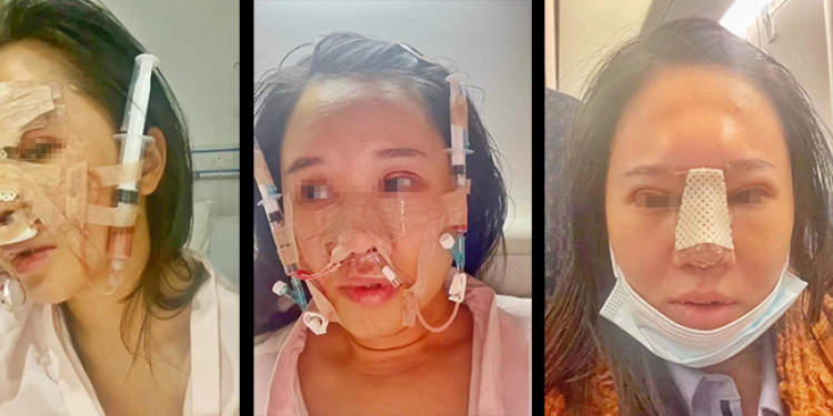 小蒋是一个在某直播平台上拥有十多万粉丝的小网红。两年前,她在该平台刷到一名医美渠道商周某,她被周某介绍的医美成功案例所吸引,来到上海圣娅医疗美容医院(以下简称“圣娅医美”)做隆鼻手术,结果却吃尽了苦头。隆鼻手术中,垫鼻尖所用的假体是从小蒋肋骨上取下来的,但手术后因为鼻子发炎,半个月后又从鼻子里取出了假体。