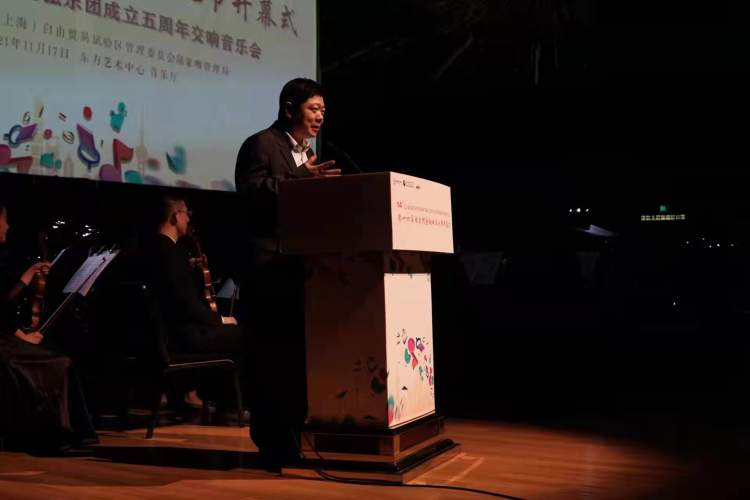 本届文化节开幕式即是由陆家嘴金融城管弦乐团呈现的交响音乐会。疫情期间,乐团通过线上云排练、线下保持安全距离戴口罩排练等方式,仍坚持进行每周至少一次的合乐排练,并积极参与区域内的公共文化和公益活动。
