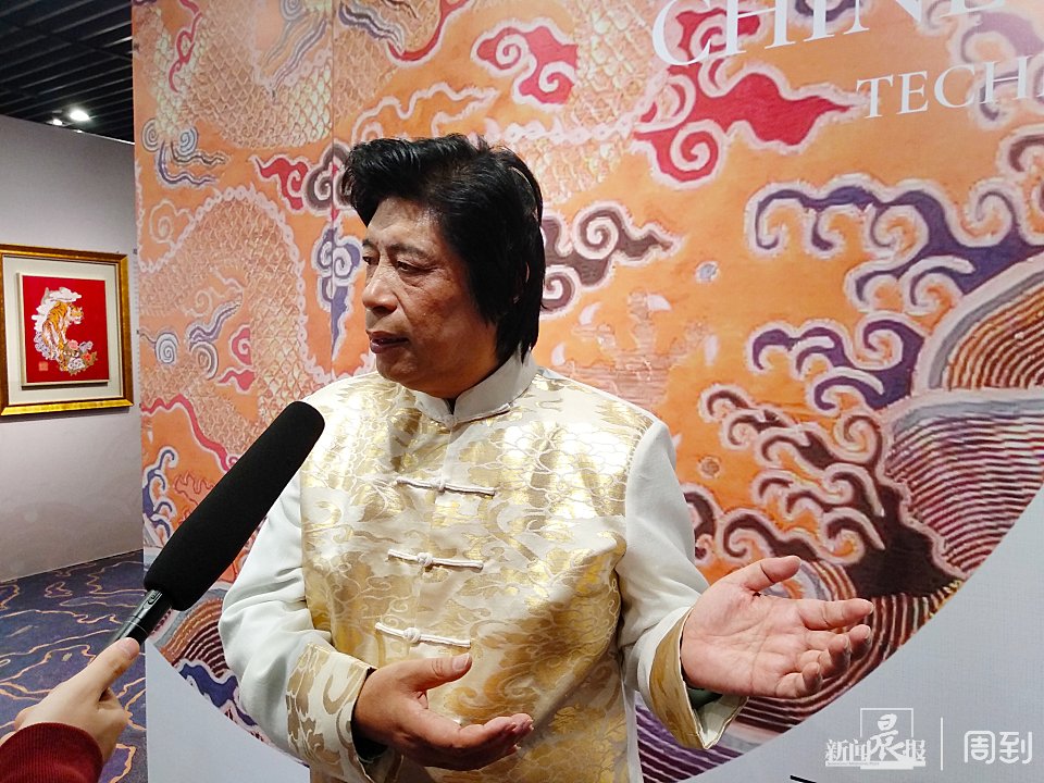在展览现场,中国工艺美术大师金文正在为嘉宾进行导览和讲解,金文告诉记者: