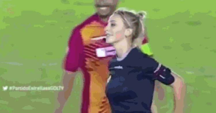这个动作不但把球员吓了一跳,而且那妩媚的神情更是又给自己增加了众多的粉丝。