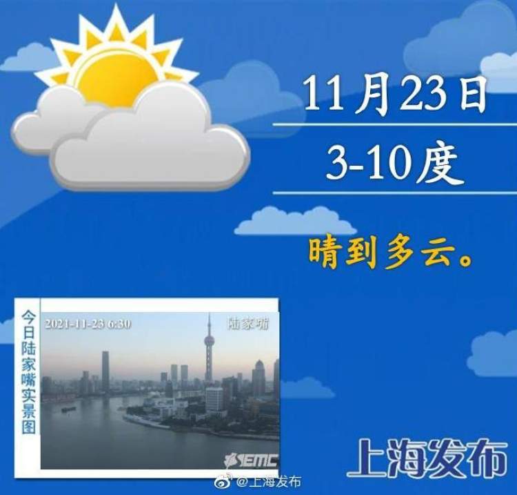 今天没想象中的冷 明天急升温 本次入冬冲刺告吹 周到君 2021-11-23 来源:周到上海 今天晴到多云,风力有所减弱,西北风,傍晚到明天西到西南风,风力都是3-4级,气温在3-10度之间,早晚时段较冷,需注意保暖。同时,天气干燥,大家要注意用火用电安全。 明晨,将出现这次寒潮过程的气温最低值,个别郊区会跌破冰点。好在这场冷空气并不会坚持太久,明天白天起气温开始回升,至周末最高温或升至18度左右。 来源:周到上海 作者:周到君 赞一个 (0)