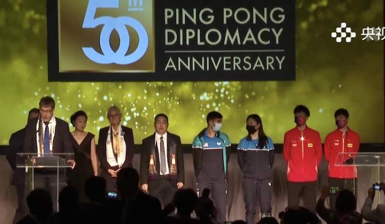 本届赛事最引人关注的是在“乒乓外交”50周年的背景下,中国和美国选手搭档配对组成的两对混双选手林高远(中国)/张安(美国)、卡纳克(美国)/王曼昱(中国)。
