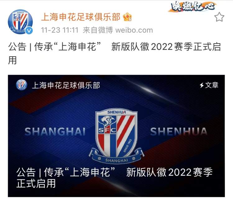 今天上午,上海申花足球俱乐部官方宣布:根据中国足协关于俱乐部名称非企业化的相关要求,上海申花足球俱乐部已于2021年2月完成了名称的变更工作,同时俱乐部的队徽也将在原有基础上做相应调整。据悉,俱乐部的新版队徽已经中国足协准入部门审核通过并将于2022赛季正式启用。