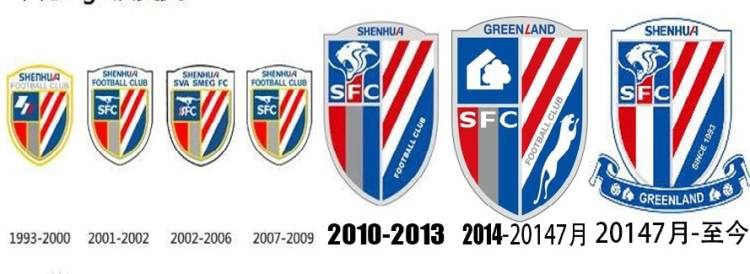 申花目前使用的队徽是俱乐部于2014年通过社会征集,并最终由申花球迷共同参与设计完成。2014年版队徽基于申花历史上的队徽整合而成,主体是象征上海市花白玉兰的盾形,左上角是象征狂放的豹头,整个队徽的颜色基调为深受广大球迷认可的红白蓝,并首次加入了象征荣誉的绶带,绶带上的文字体现了绿地集团的元素,其中复古足球寓意申花队的前身,成立于1953年的上海足球队。