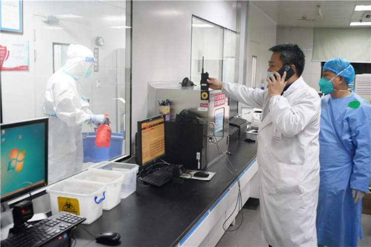 核酸检测团队抓紧时间开展核酸样本检测工作,并同时寻求周边兄弟医院协助核酸检测,已加快检测速度,及时回应社会关切。