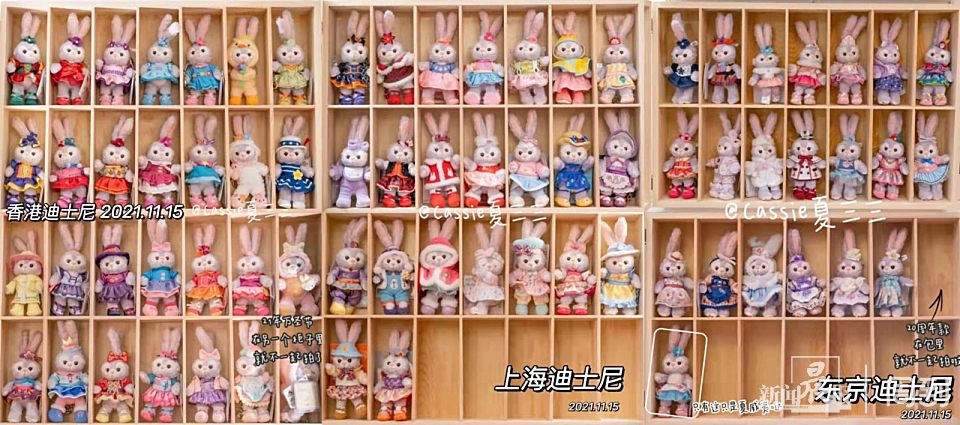 2018年,星黛露登陆上海迪士尼,夏三三的收藏力量集中到这只兔子身上。每一款星黛露都穿着不同的小衣服,让她越看越爱。