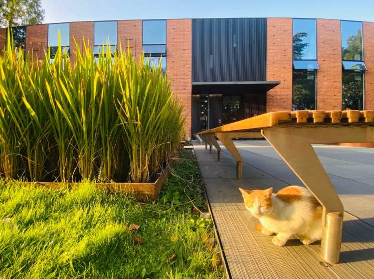 一群群蝶飞蜂舞,不出市区也能享受田间乐趣。园区的建筑都是砖红色的,暖阳下依稀可见秋天的藤蔓、爬山虎等相互印衬。时不时也有摄影爱好者前来争奇斗艳, 一动一静,各有千秋。
