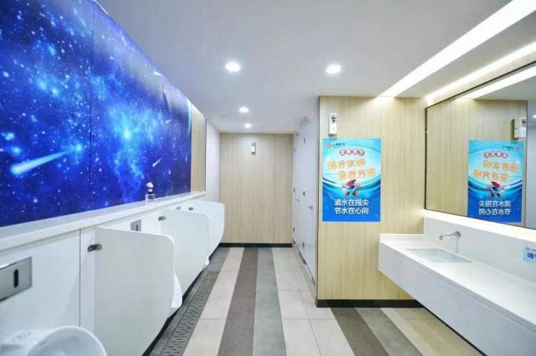 如厕区域与洗手区域采用“干湿分离”,现代化设计让人“眼前一亮”。专职人员看护巡检卫生间,保证现场环境卫生,并完成清洁记录。
