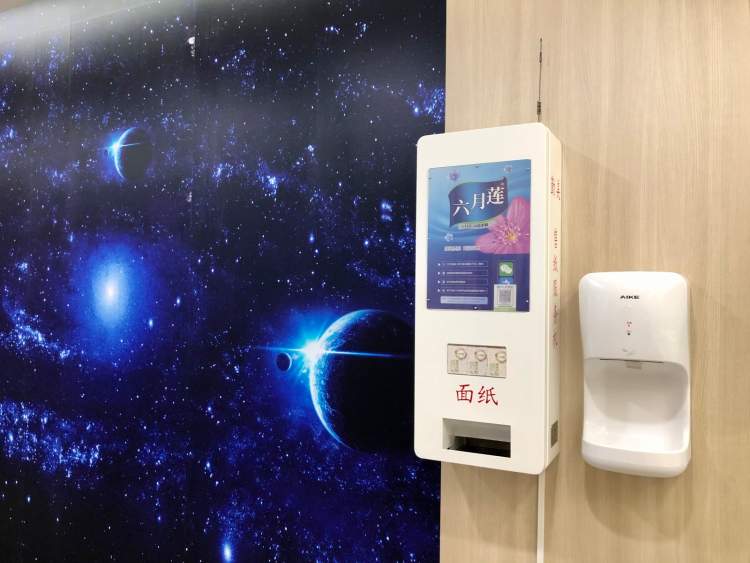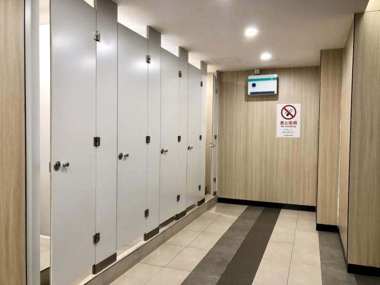 冲厕设备采用self-flush和智能感应系列相结合,从中央空调到新风系统,每个厕间都配备了排气扇,当有人使用时,它会感应并自动开启。