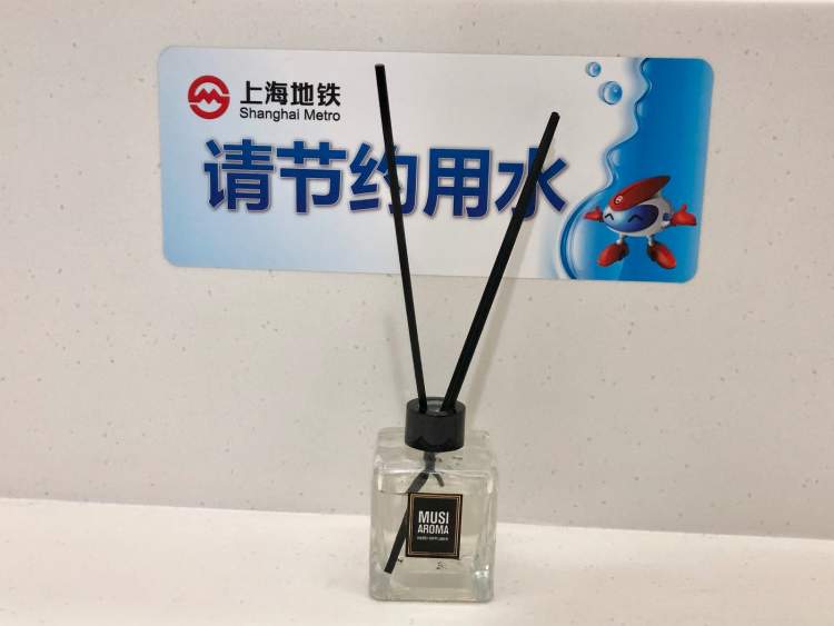 厕所隔间内的温馨提示和细致服务,如同居家般的温馨;再添置香薰设施加持,营造了清新环境,大大提升了乘客的感知度。
