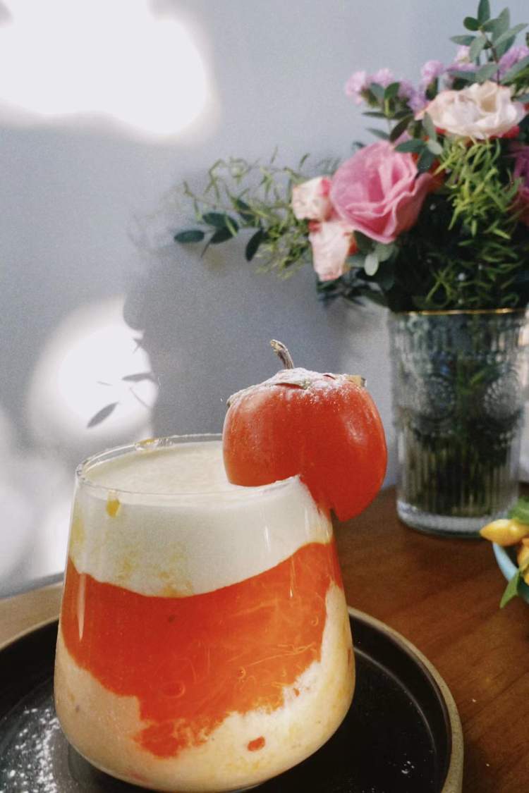 近日,在HUGO HUSKY HOUSE,周到君发现几乎每桌都点了一款柿子饮品——柿子大福↓
