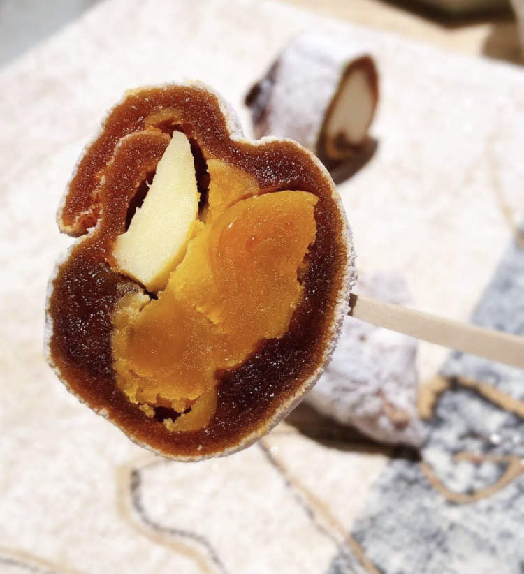 主料就是常见的柿子干,有咸口、甜口两种,甜口的馅料是白豆沙糯米,咸口的则是加了网红口味咸蛋黄和芝士。