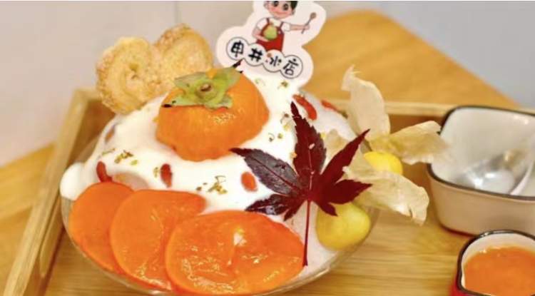在魔都一家刨冰专门店“申井冰”里,周到君发现了一款“柿柿如意桂花冰”。
