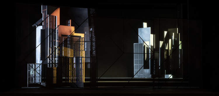 两条16米长传送带、三块ART DECO风格纱幕、四个可360度旋转建筑车台,本季舞美设计师刘科栋将自己的设计总结为: