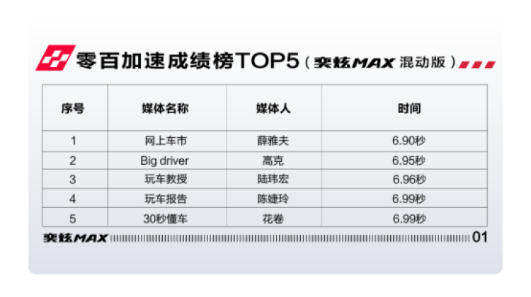 (奕炫MAX混动版挑战零百加速top5成绩排行榜)