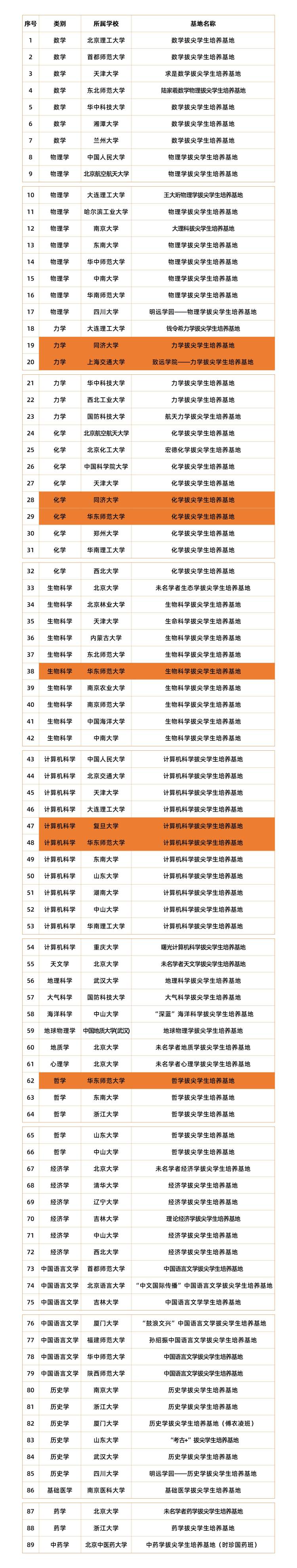 附:基础学科拔尖学生培养计划2.0基地(2021年度)全名单