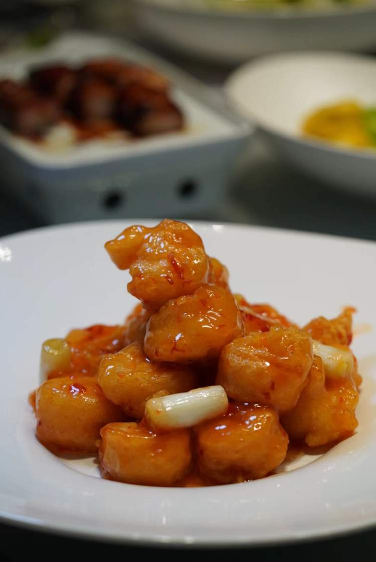 此菜区别与传统的川菜,选用新鲜拨壳的大虾结合炸烹的制作工艺,在高油中形成一颗颗色泽金黄的虾球,脆口弹牙,美味无双。浇上杏花楼大厨特调的酱汁,多层次的口感尤为出众,用鲜甜酸辣反复敲打味蕾的感觉,任谁都无法抵御。