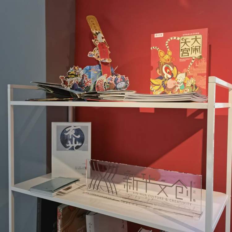 本次活动,空间的设计运用了大量的《大闹天宫》电影场景元素,力求贴近原片视觉效果,玻璃橱窗上手绘的《大闹天宫》场景活灵活现,尤其是在大楼顶点的橱窗,巧妙的拼凑出了水帘洞的场景,仿佛后面的孙悟空即将闪亮登场。空间里除了各种《大闹天宫》的电影元素,为纪念《大闹天宫》电影首映60周年特别推出的大闹天宫限量款手表,新华文创带来的文化艺术主题书籍、展览画册等,《大闹天宫》印章、明信片打卡,绘画、书籍、动画电影原稿等兼具创意性、观赏性、实用性的文创产品。源于经典文化,时尚焕新的“文创礼物”为即将到来的新年带来了满满的仪式感!