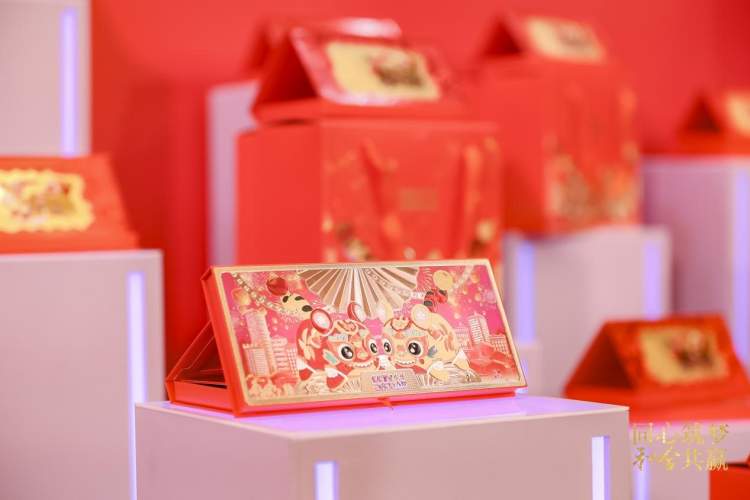 其中,“总台文创生肖和合虎”是“总台文创”在2022年农历壬寅虎年来临之际原创的虎年生肖形象。耳藏五福梅花,鼻寓富富有“鱼”,脚套象征风调雨顺的吉祥轮,尾巴挂有铃铛寓意万物有灵,传递出勇猛与正气、平安与吉祥。这个以民间布老虎为参照的IP产品,融合了深受年轻人喜爱的设计元素,兼具岁月感与潮流感,既有传统温度又有新鲜生命力。“虎年压岁金”由艺术大师周令钊先生从传统文化和民间艺术中吸取养分,创造性地设计出具有民族风格的装饰纹饰,生动而富有文化内涵。