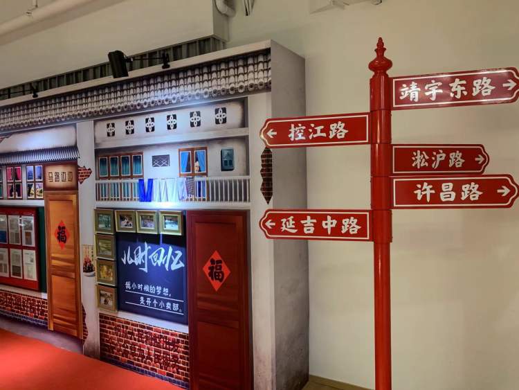 记者在现场看到,整个展示空间不算大,也并没有特别精致、做旧的还原,但“小世界弄堂口”的布置,墙面画报上的沪东工人文化宫、三峰精品商厦,以及“市百三店时光杂货铺”上“环球供货 一应俱全”的标语,还是能让人瞬间穿越回数十年前的时光。