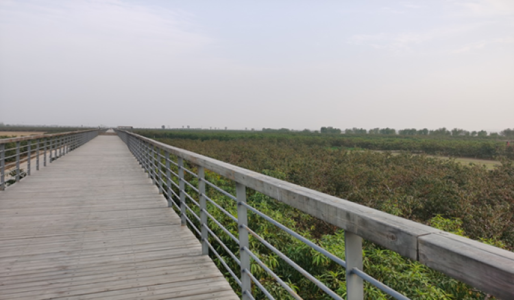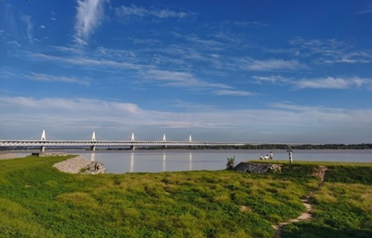 沿着穿滩公路往东30公里就是新乡黄河段著名的“黄河小瘦腰”了。这是人们对于黄河最危险堤段“豆腐腰”的戏称。地图上看,这里的河岸像锯齿连绵不断。难怪一路上会看到一垛垛石头整齐排列在岸边,这些防洪丁字坝上预备了多年的石头,如战士般守护着黄河大堤安然无恙。凭栏远眺,此时的黄河水静静地流过脚下,是那么温顺,全然没有了“黄河之水天上来”的豪迈以及壶口瀑布滔天声响的震撼。更难想象它曾经桀骜不羁肆虐千里,电影《1942》的景象注定成为历史。